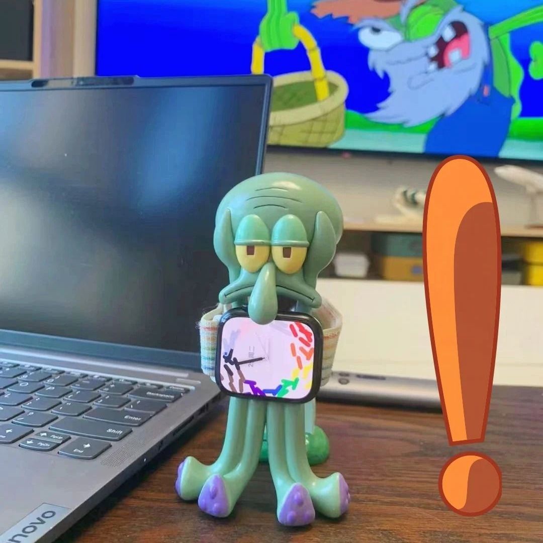 Es ist sowohl eine Handyhalterung, mit der Sie das Gerät beim Ansehen von Fernsehserien/Videos ruhig halten und Ihre Hände frei haben💻, als auch ein emotionales Ornament mit Thaddäus hängenden Augenbrauen und seiner zusammengesunkenen Haltung.